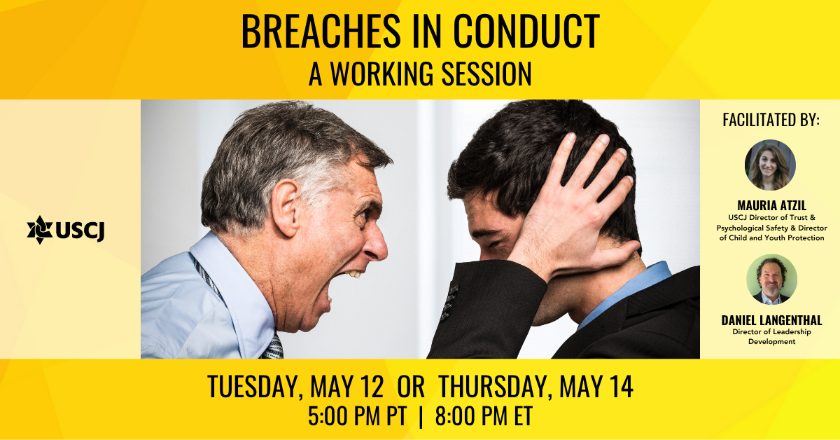 Have you ever experienced disrespect in a board meeting or in the synagogue and you wished you handled it better? Have you ever felt like your congregation has a hard time holding others accountable for inappropriate behavior? The USCJ is offering an interactive webinar where Lay Leaders can learn tools for managing these types of situations.